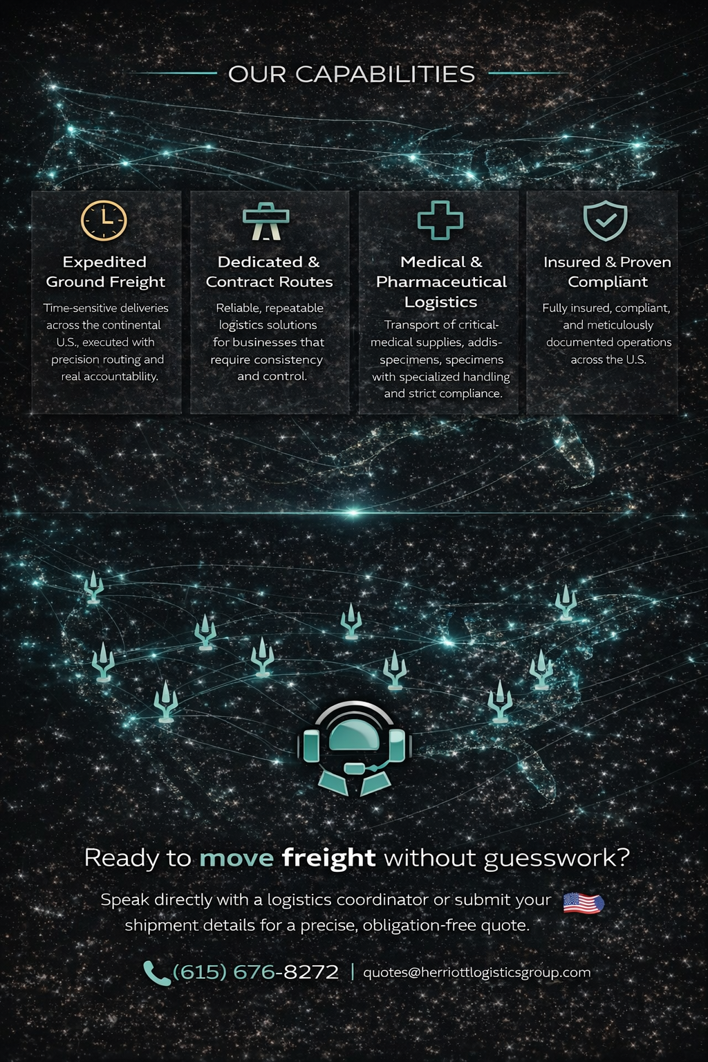 Herriott Logistics Group specializes in time-critical, high-value freight where precision and reliability matter. From expedited ground transport to dedicated routes, we operate with discipline, transparency, and execution-first logistics.